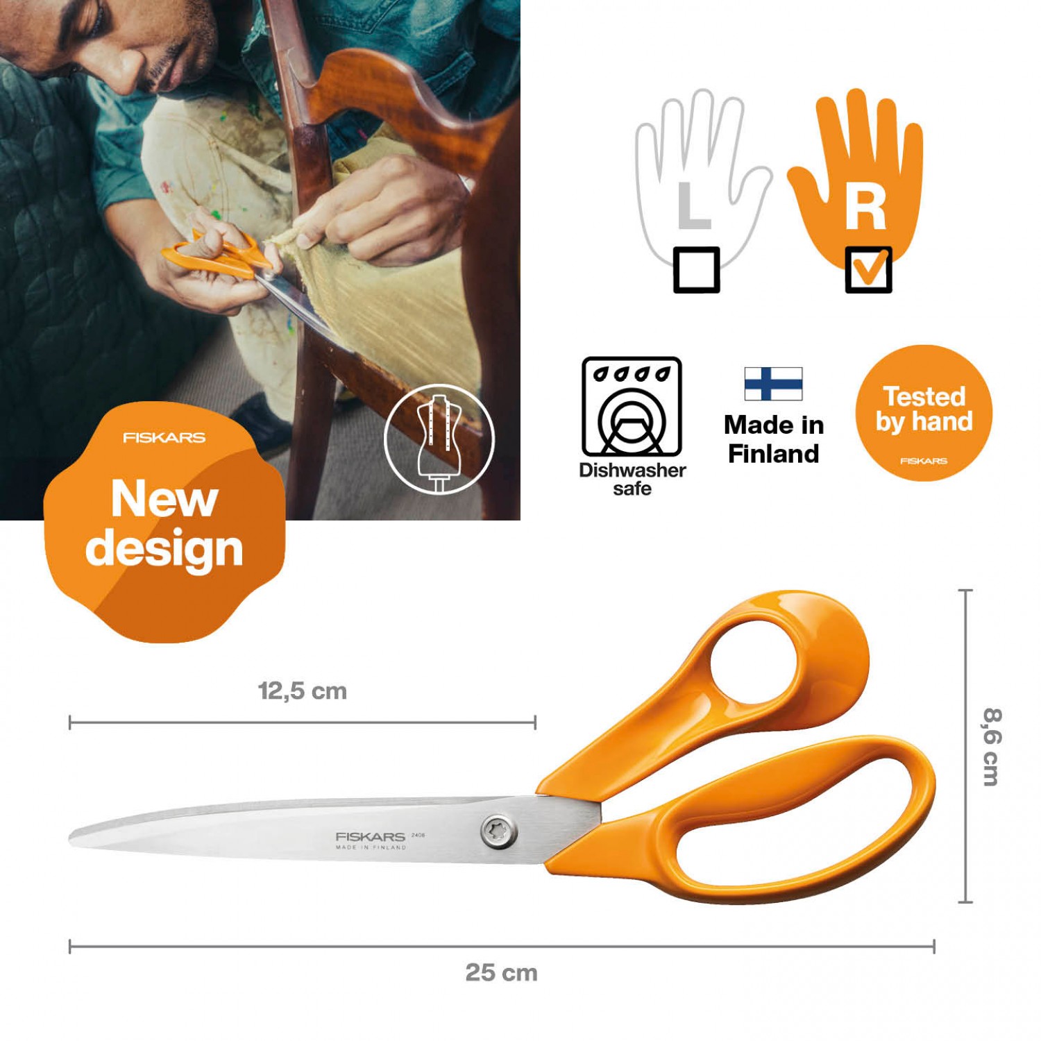 Ножиці універсальні Fiskars Classic Large universal 25 см (1075038 / 1005151) це - універсальні великі ножиці для щоденних задач: папір, картон, тканина, плівка, упаковка та інші матеріали, де потрібен точний і рівний різ по всій довжині леза.